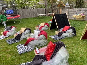 Kim and Co. Events does not supply the blow up screen for the outdoor movies and gamer nights but we can provide you with contacts to reputable companies. We can't quote you a price but can give you a general idea of pricing. Kim and Co. provides the rental pieces and is priced by person. Delivery, styling and takedown is extra and is determined on how many guests you have and what town you live in. You can pick from any of our themes to celebrate in a unique way! When booking an outdoor event remember to have a rain date in mind. Please call for pricing.